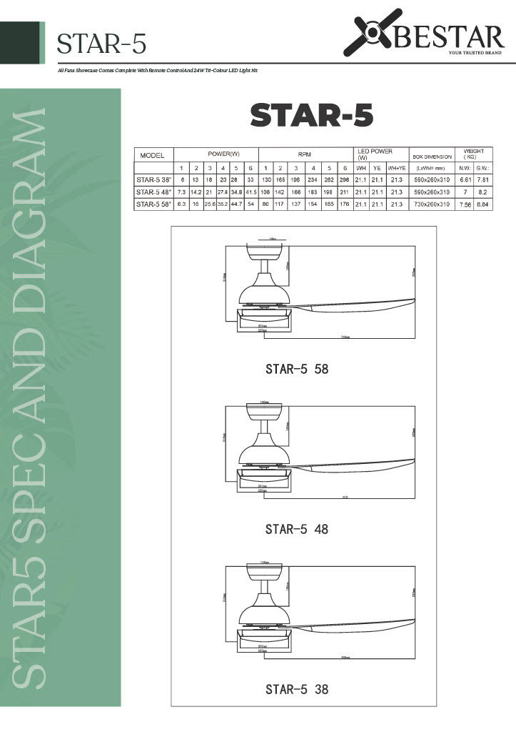 BESTAR STAR-5 SMART Ceiling fan (38", 48", 58")
