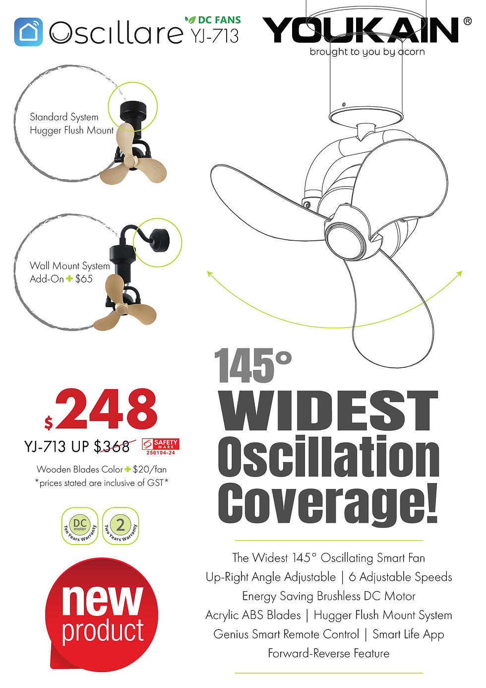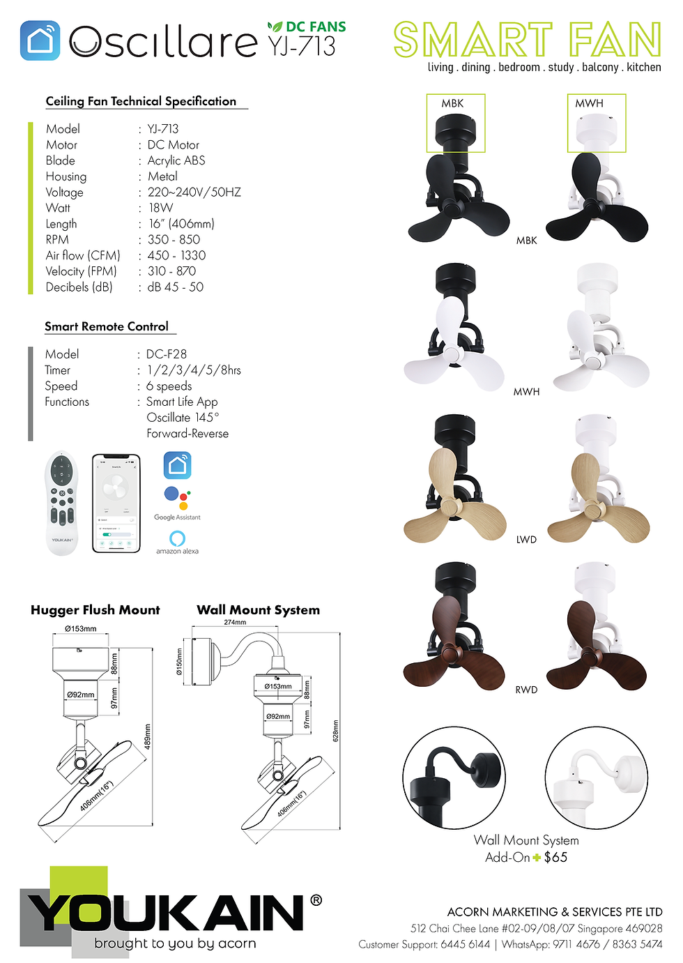 YOUKAIN YJ-717 -SMART ceiling fan (30", 42")