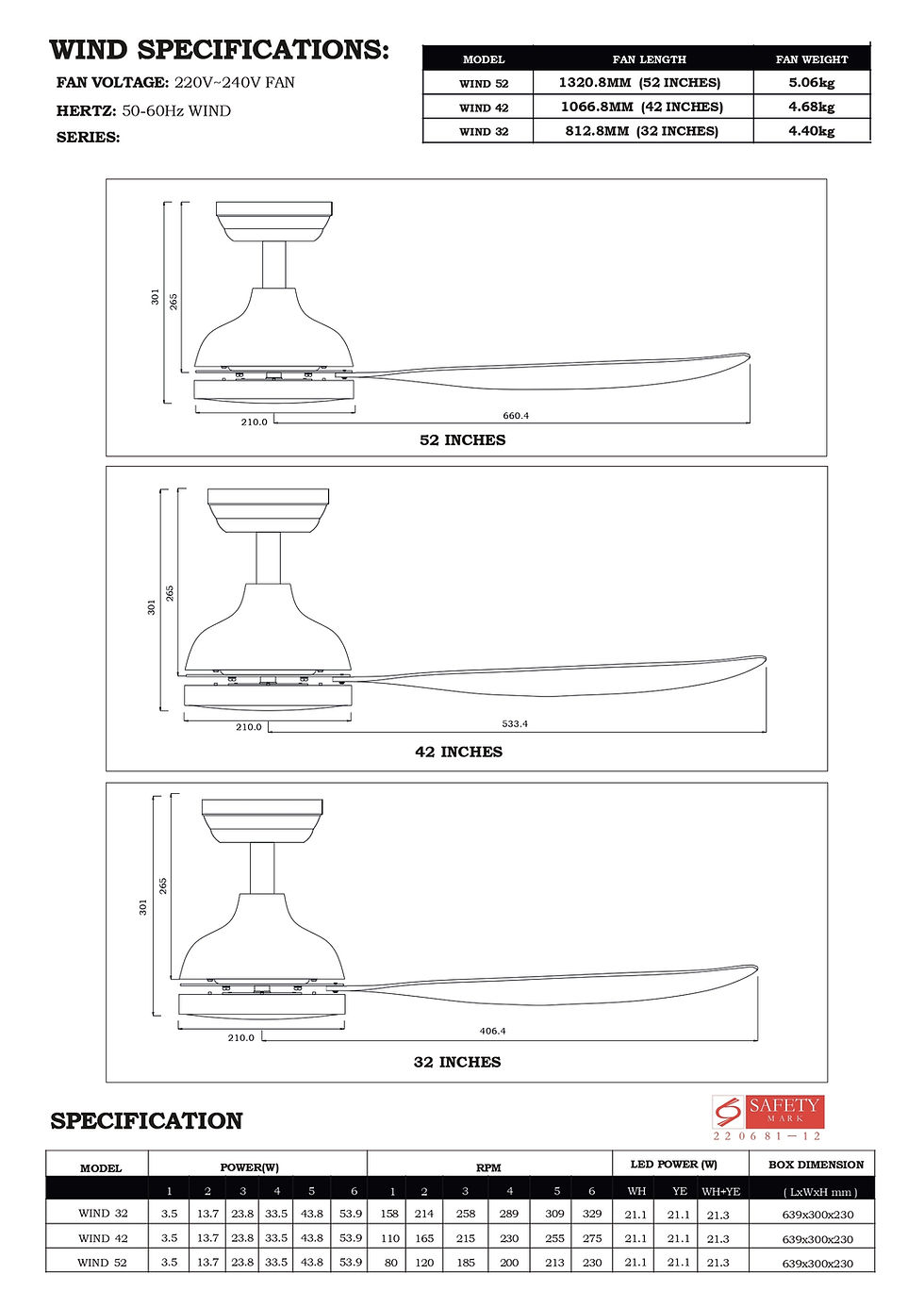 BESTAR WIND Ceiling fan (32", 42", 52")